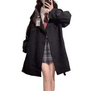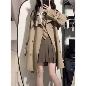 黑色风衣外套女中春秋新款韩版常规英伦风小个子