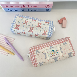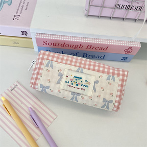 5822 拼接格子清新大容量学生文具袋便携笔袋上课铅笔盒杂物收纳