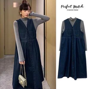 2025年秋冬牛仔背带连衣裙胖MM显瘦裙子新款套装潮妈宽松牛仔长裙