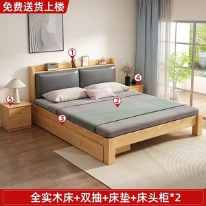 实木床简约全实木1.2米1.5米单人床家用双人床小户型出租房床北欧