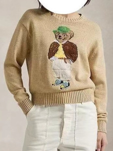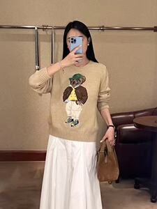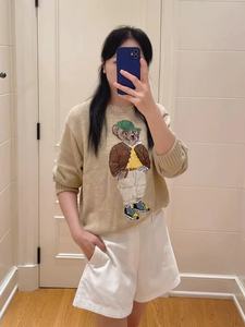 2025款秋冬季女式针织衫小熊重工刺绣针织衫毛衣圆领长袖休闲百搭