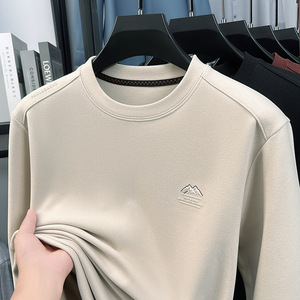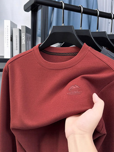 跨境男士圆领长袖卫衣春秋新款时尚休闲简约套头宽松打底衫上衣男