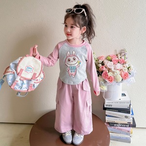 女童秋装卡通工装套装2025新款儿童休闲洋气校园两件套织里童装潮