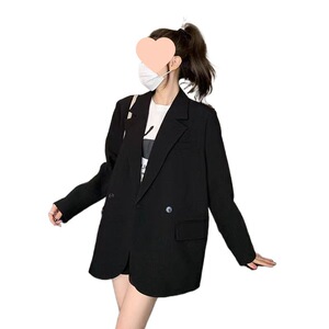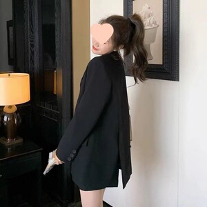 春秋新款小西装外套女小众设计感韩版后开叉休闲宽松西服黑色长袖