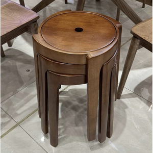 全实木风车凳家用可叠放全实木圆凳方凳现代简约北欧小户型餐凳椅