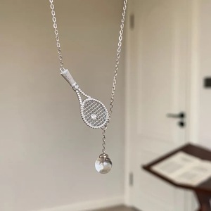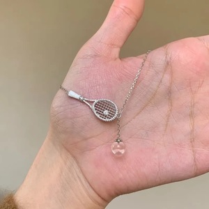 2025新款羽毛球拍项链女气质镶钻流苏玻璃珠吊坠高级感小红书同款