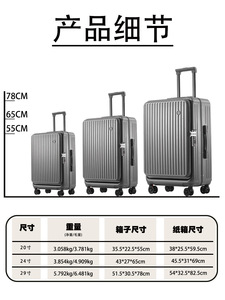 新款侧开口铝框行李箱女多功能万向轮拉杆箱20寸登机旅行箱男批发