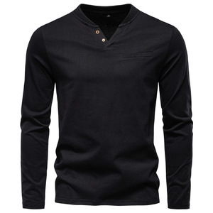 2025秋季新款男士休闲欧码V领长袖T恤修身打底衫纯棉T恤上衣男