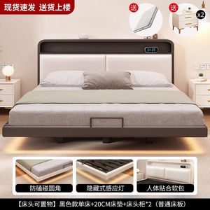 密铺款悬浮床 床头柜*2 送感应灯 黑色