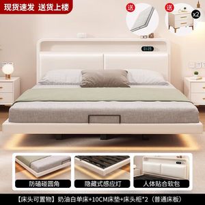 密铺款悬浮床 床头柜*2 送感应灯 白色