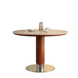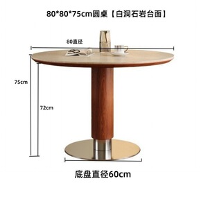 法式复古餐桌洞石岩板圆桌小户型家用简约圆形饭桌全实木接待桌子