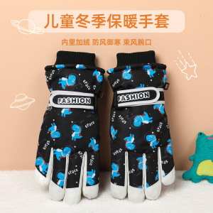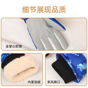 儿童滑雪手套冬季女宝加绒加厚可爱保暖小中大男童玩雪防水棉手套