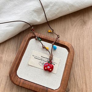 多巴胺彩色苹果编织项链女款2025新款可爱长款挂脖卫衣链吊坠配饰