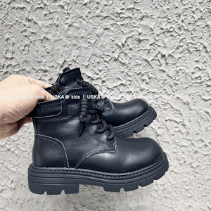 女童马丁靴2025秋冬新款短靴黑色男童皮靴春秋小女孩儿童真皮靴子