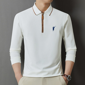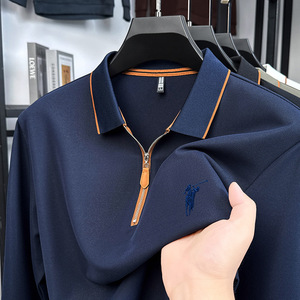 2025秋冬男士拉链款polo衫保罗刺绣T恤中青年休闲t恤刺绣拉链t恤