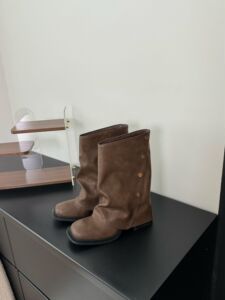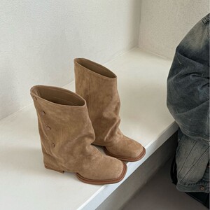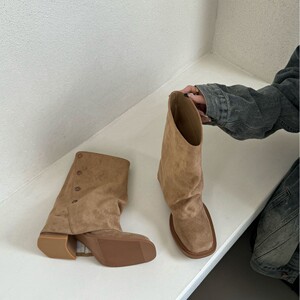 998-3~粗跟法式方头西部牛仔短靴女靴子2025年秋季新款裤管靴