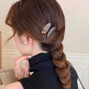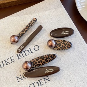 韩版新款豹纹珍珠鸭嘴夹发夹时尚百搭侧边夹刘海夹高级感发卡发饰
