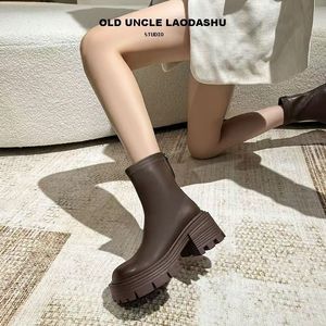 弹力马丁靴女2025秋冬新款短靴时尚百搭复古显瘦小个子粗跟瘦瘦靴