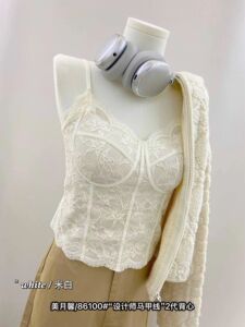 美月馨 6100 马甲线精致蕾丝固定杯吊带背心修身显瘦无痕一字美背