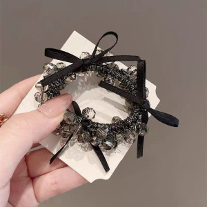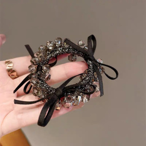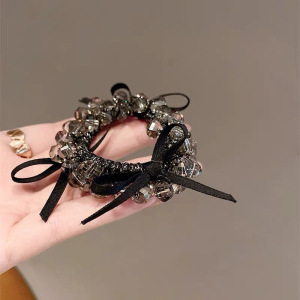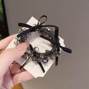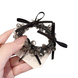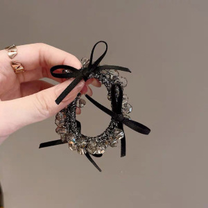 轻奢高级感重工水晶串珠发圈网纱蝴蝶结头绳精致韩系绑发马尾皮筋