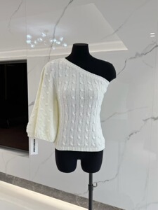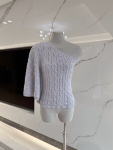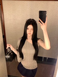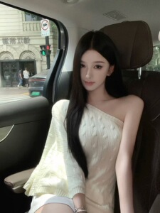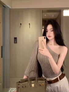 设计感千金风斜肩背心修身显瘦露肩百搭长袖针织不规则上衣早秋女