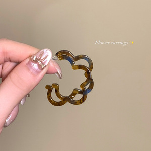 复古美拉德琥珀色镂空花朵耳环女小众独特设计耳钉高级感气质耳饰