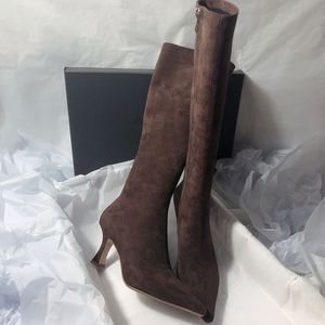 2025新款韩版简约长靴不过膝弹力靴磨砂瘦瘦靴侧拉链尖头高跟靴女
