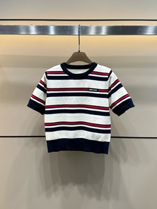mm家25ss秋冬新款条纹拼色针织开衫+针织短袖