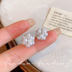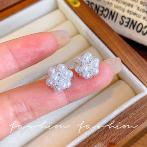 小巧精致耳饰满天星闪钻花朵珍珠耳钉轻奢小众设计感时尚气质耳环