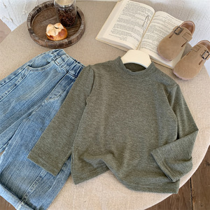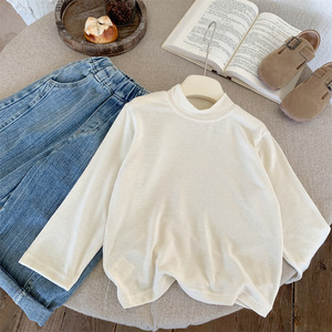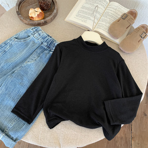 2025秋季新款韩版儿童百搭字母打底衫男女童软糯舒适半高领长袖T