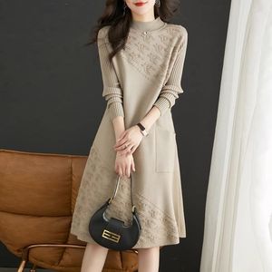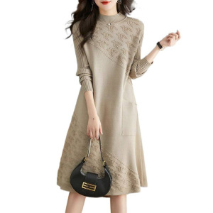 名媛风女装针织连衣裙秋冬新款内搭配大衣宽松中长款显瘦毛衣裙冬