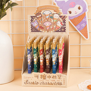 广博正版冰淇淋三丽鸥家族可擦黑按动中性笔学生书写摩易擦笔