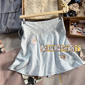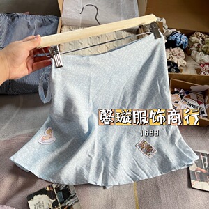 BM风 短裙韩系蓝色碎花一片式系带半身裙bm辣妹风a字裙显瘦裙子