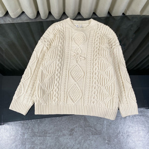 正确版本原标CEL家经典款米色配色麻花情侣圆领针织圆领套头毛衣