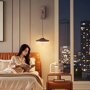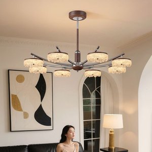 法式轻奢水晶客厅吊灯主灯奶油风中古复古胡桃木纹智能护眼卧室灯