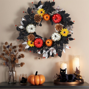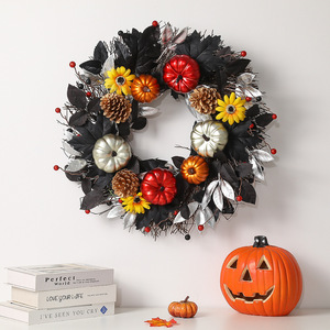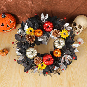 2025年跨境新款万圣节南瓜花环装饰门帘秋收节向日葵枫叶家居布置
