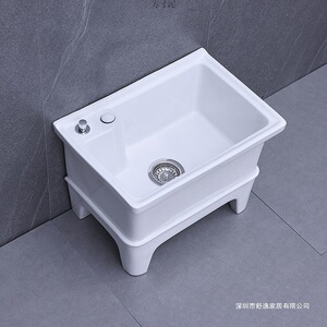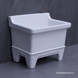 陶瓷拖把池阳台墩布池大号方形长拖把洗宽拖布盆台控自动下水器厂