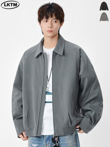 LKTM男装 美式cleanfit灰色翻领夹克男女简约高级感情侣休闲外套