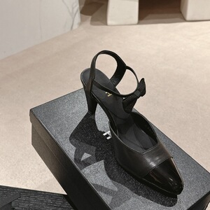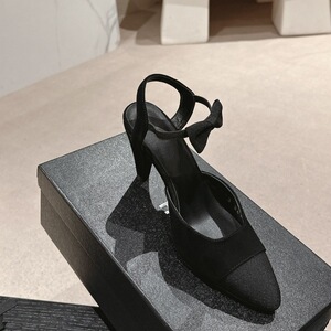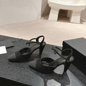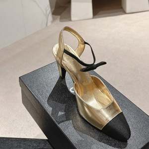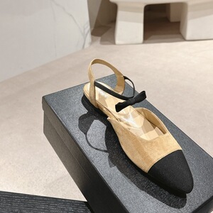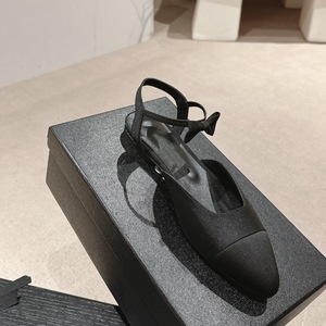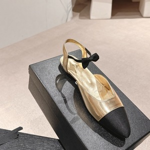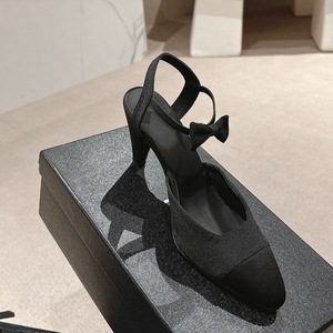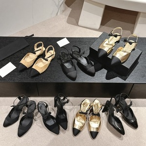 高定小香香法式蝴蝶结高跟凉鞋女一字扣带包头后空平底凉鞋女