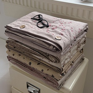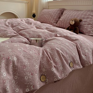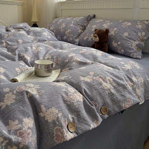 新款原麻复古四件套学生宿舍棉麻三件套印花纽扣款床单被套床笠款