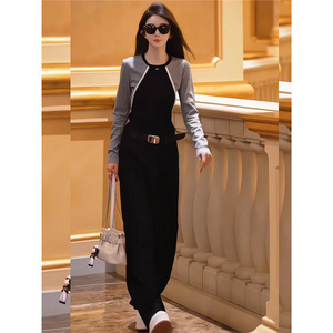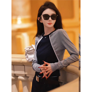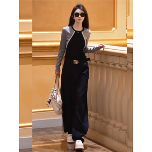 深圳南油美式气质套装女2025秋修身显瘦长袖T恤阔腿牛仔裤两件套