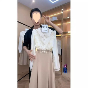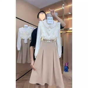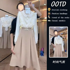 2025早秋季新款高级感荷叶边衬衫套装女港风气质显瘦半身裙两件套