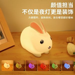 夜灯卡通可爱兔子造型硅胶小夜灯 一拍即亮充电氛围感硅胶拍拍灯