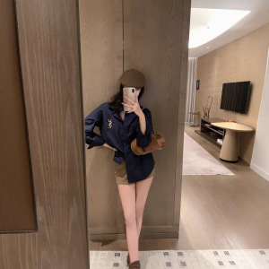 25早秋新款男友风金线刺绣字母口袋极简衬衣