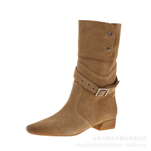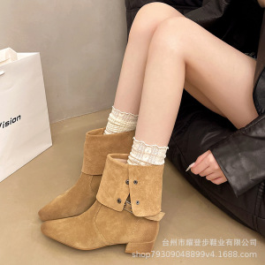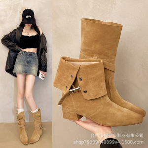 2025秋冬季新款韩版粗跟时装靴女英伦风堆堆靴美拉德复古西部靴子