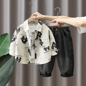 男童衬衫套装春秋款2025新款时尚中小童春秋洋气时髦韩版两件套潮