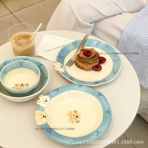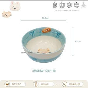 毛球朋友系列可爱萌宠手绘釉下彩陶瓷餐具精致小饭碗沙拉碗甜品盘