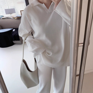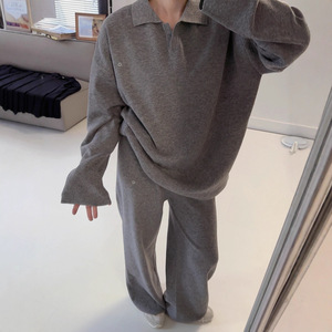 alo同款瑜伽健身套装女老钱风polo领套头针织衫休闲阔腿裤两件套