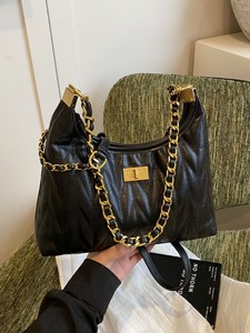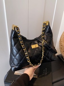 2025新款时尚高级质感菱格链条单肩斜挎包小香风百搭腋下托特包包