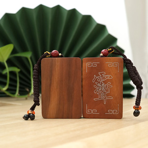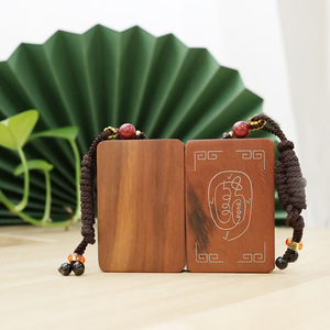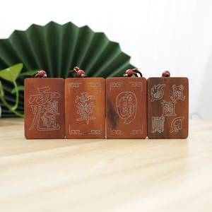枣木嵌银雕刻紫薇讳赵公明吊坠挂件五岳无事牌带挂绳五雷八卦牌子